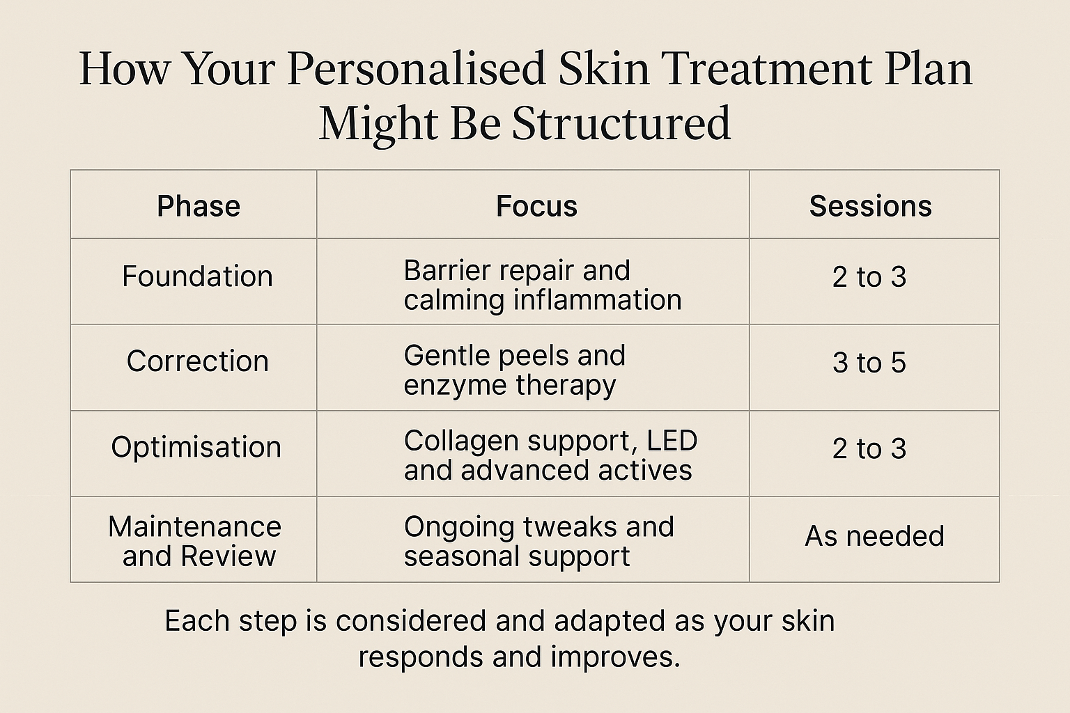 A personalised skin treatment plan provides structure, strategy and a sense of direction. It’s a relationship, not a transaction.
